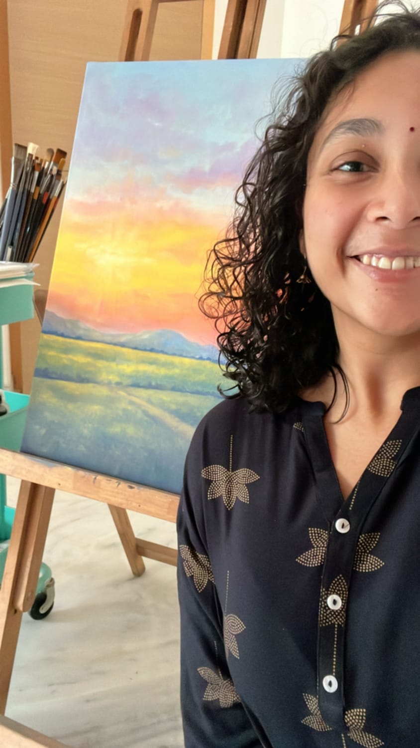 A few months from now, your walls slowly filling with paintings you created, your desk surrounded by colour, calm, and joy, and you filled with the confidence that you can literally paint any landscape from your reference, with ease and joy!